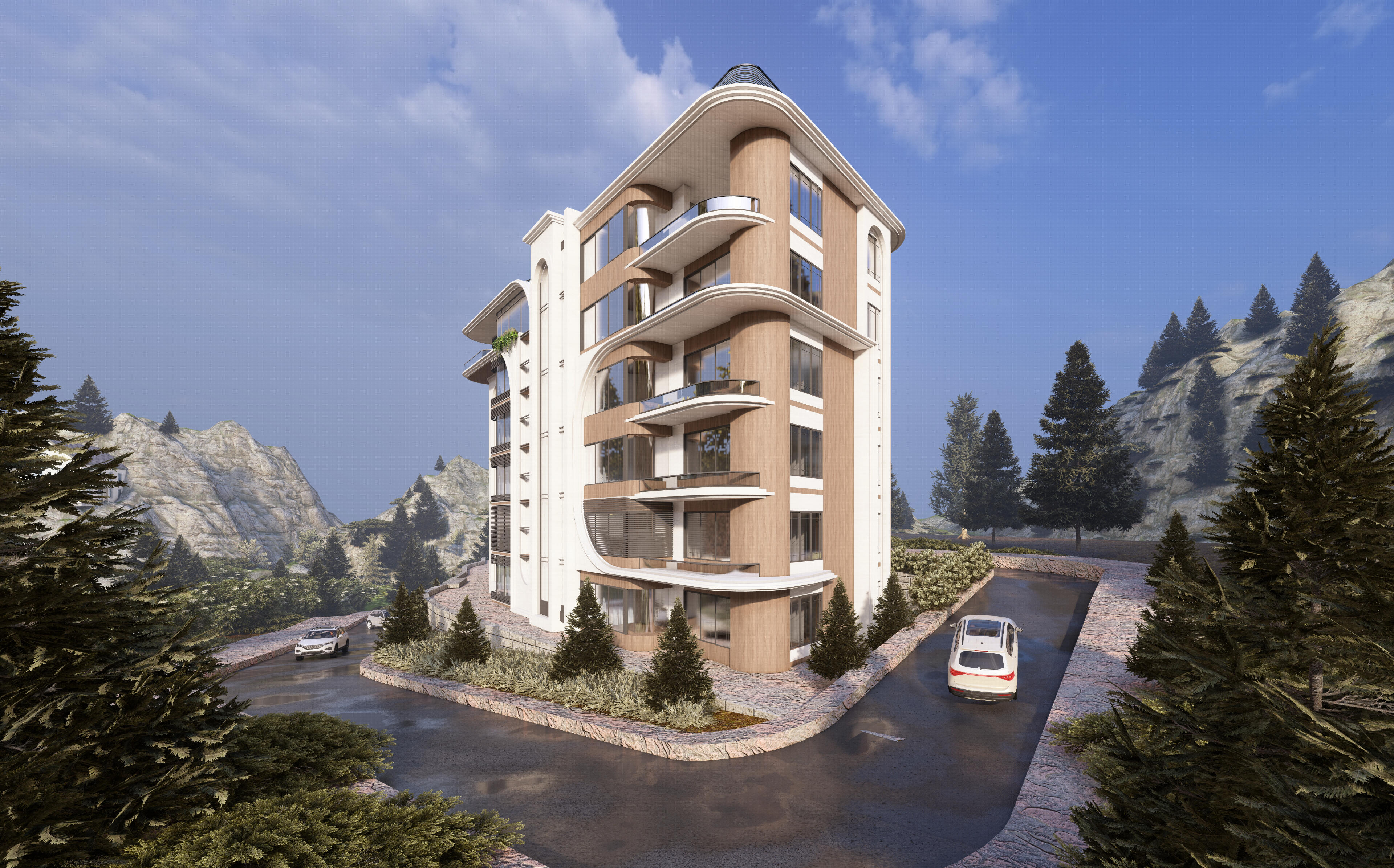 A contemporary residential complex rising four floors above ground with an accessible roof level. Each floor accommodates two thoughtfully planned apartments, offering two- and three-bedroom layouts with areas ranging from 90 to 120 m². Designed with a modern architectural language, the project features clean compositions, refined proportions, and carefully selected cladding materials that enhance its urban presence.