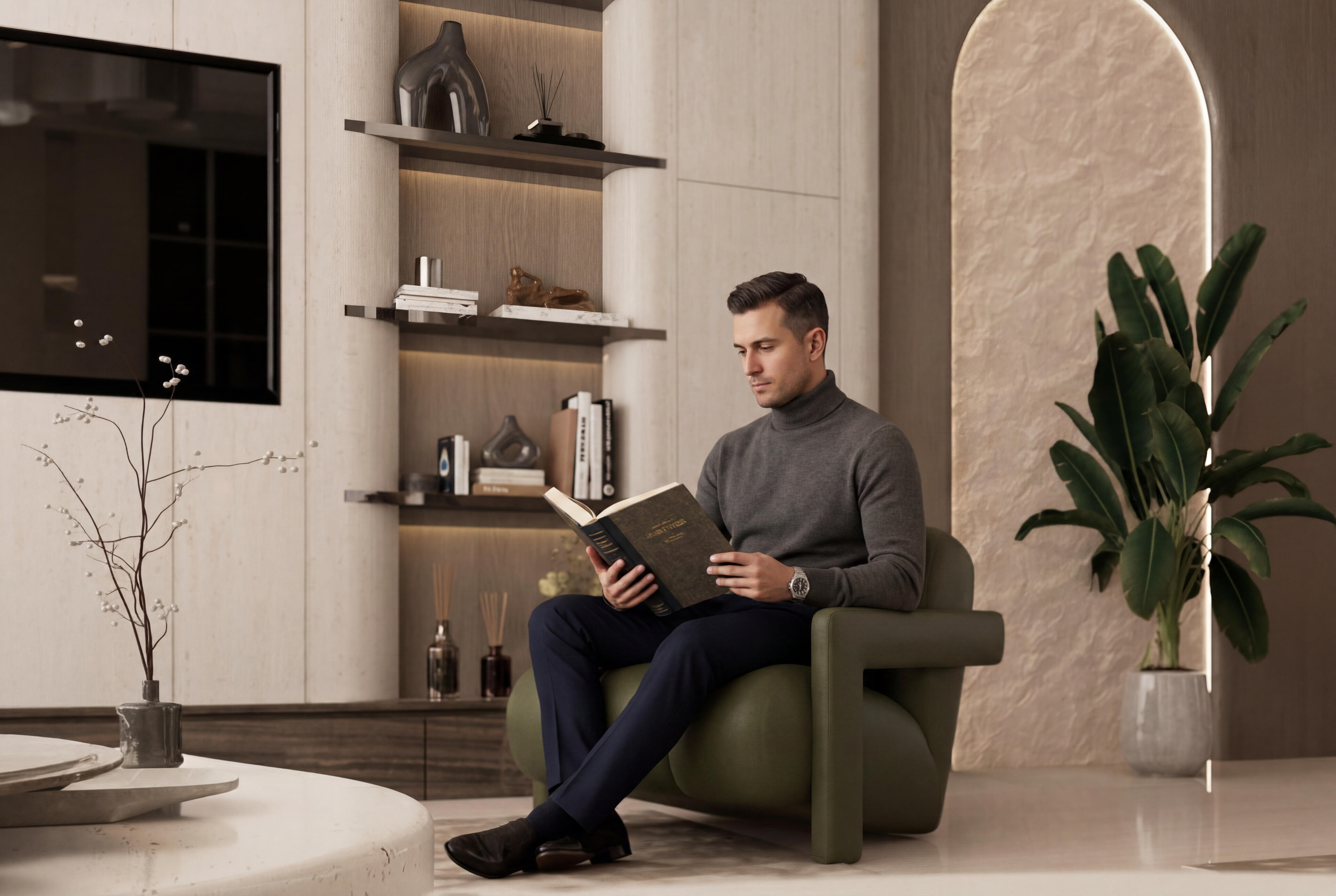 A modern interior designed with clean and simple lines, where minimalism meets quiet elegance. Soft neutral tones, refined textures, and low-profile seating create a calm and inviting atmosphere. Subtle details in lighting and materials add depth without overwhelming the space. The result is a balanced, sophisticated setting that reflects comfort, tradition, and contemporary simplicity.
